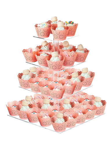 Rent this beautiful clear acrylic cup cake tower also lights up for added effects.